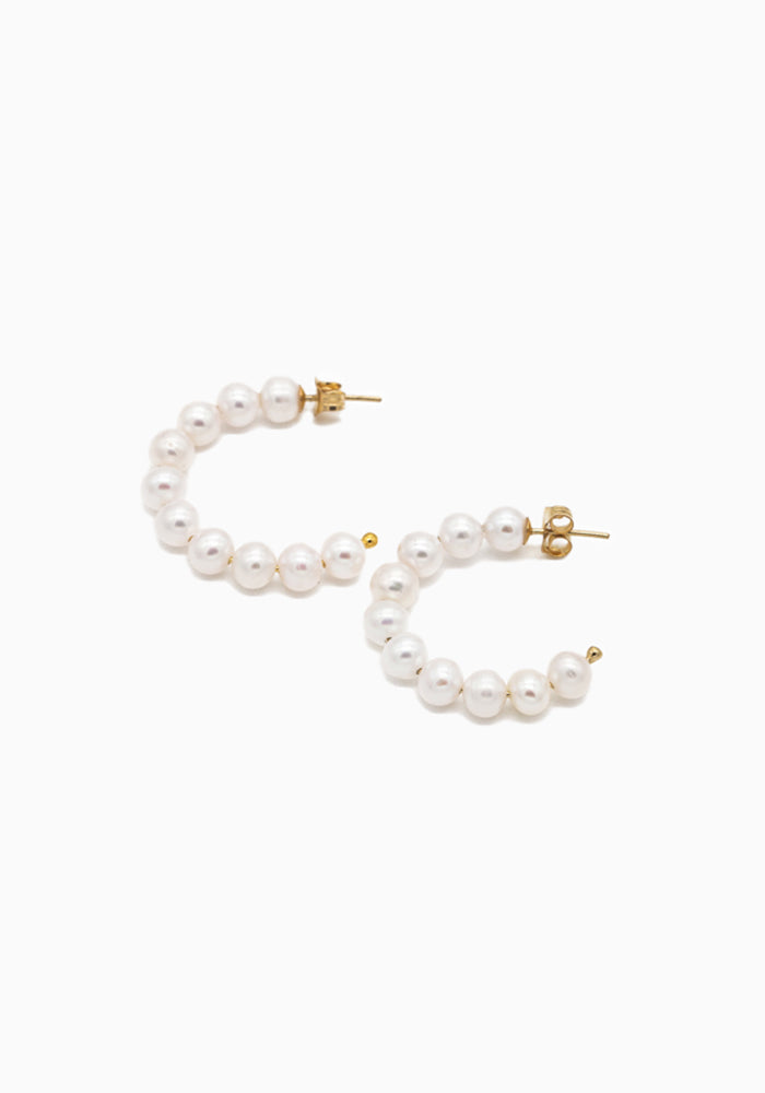 Du liebst Perlen und Creolen gleichermaßen? Dann liegst du mit unseren wundervollen  Ela Pearl Hoops goldrichtig: jeweils zehn runde Süßwasser Perlen mit einem seidigen Lüster sind zu einer großen, offenen Creole aufgereiht und machen dieses Schmuckstück einzigartig. Mit der natürlichen Schönheit der Perlen wird dein Look perfekt für jede Gelegenheit, ob ins Büro oder zu einem extravaganten Auftritt.